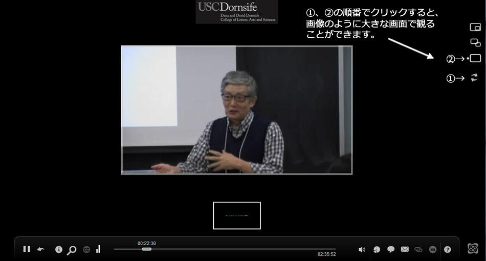 現在、この2つの講演は再生できないようです。(2015/10/06 12:48 管理人)画面を大きくする方法