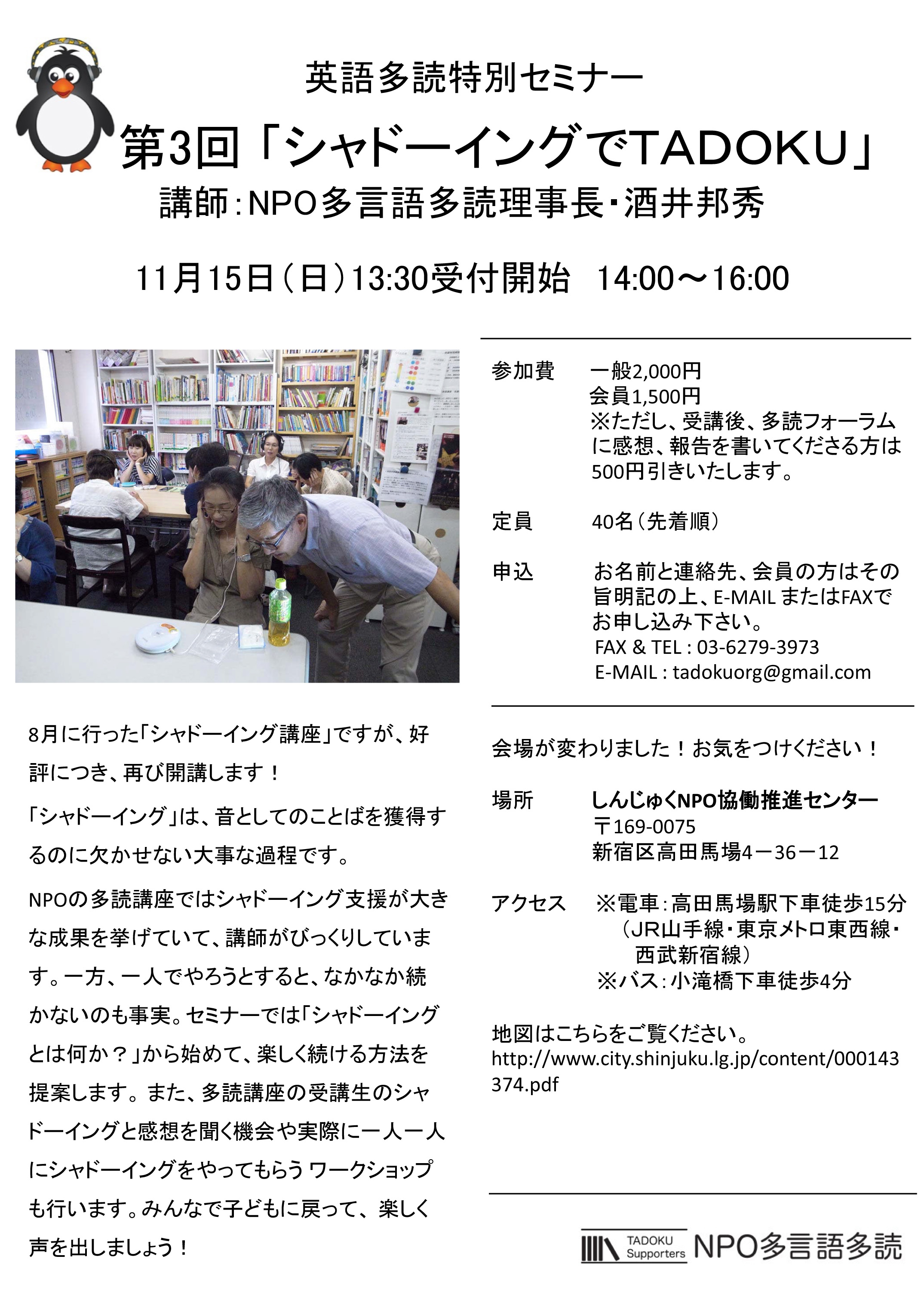 Re: 【TADOKU特別セミナー】11月15日(日)「シャドーイングでTADOKU」報告トピック