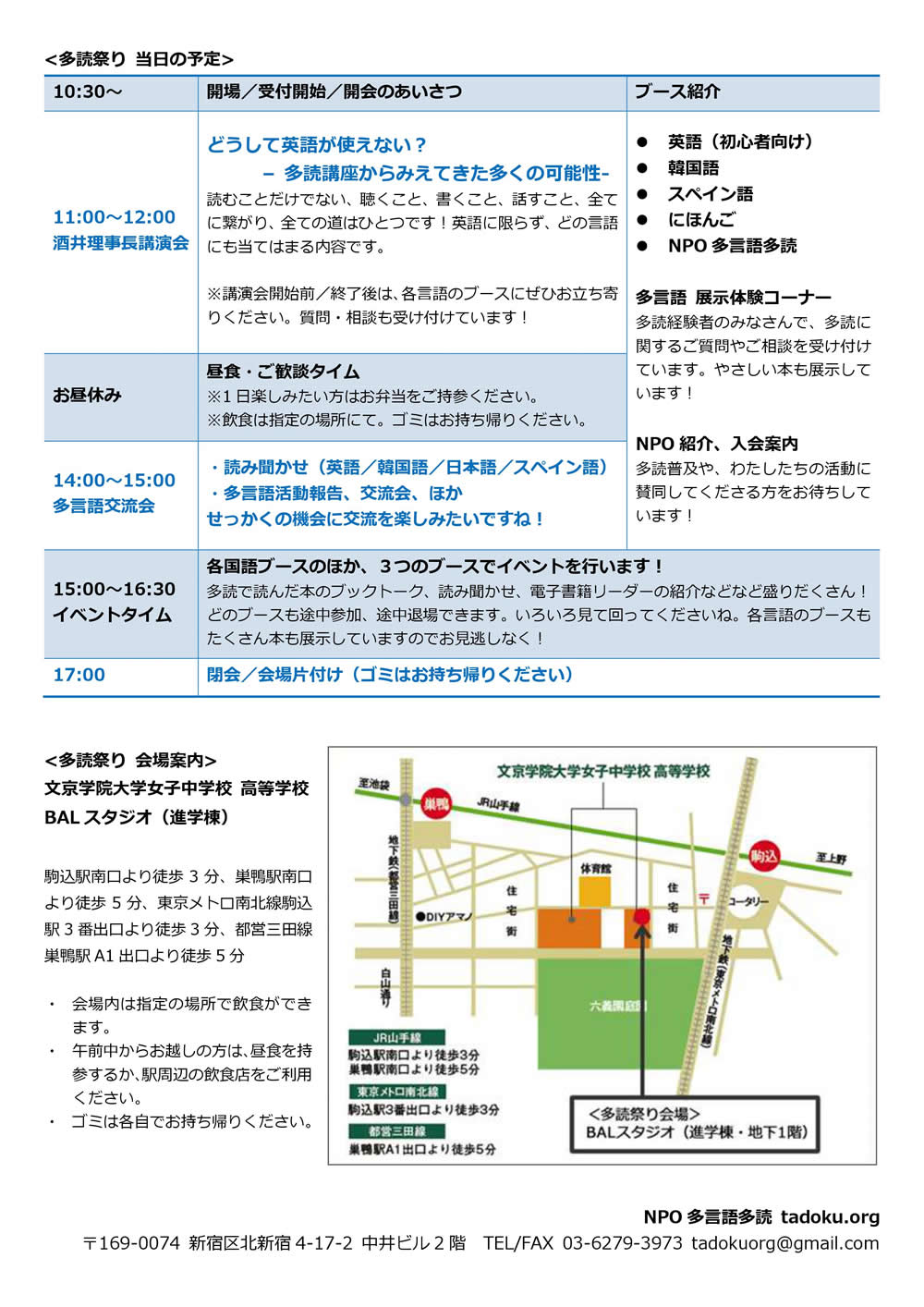 ※多言語交流会(全体会)で行う「読み聞かせ」はイベントコーナーで呼びかけているものとは別の企画です。