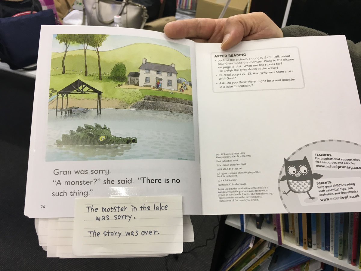 ORTの各ページに、自分で作った一文を足しての読み聞かせ、、、